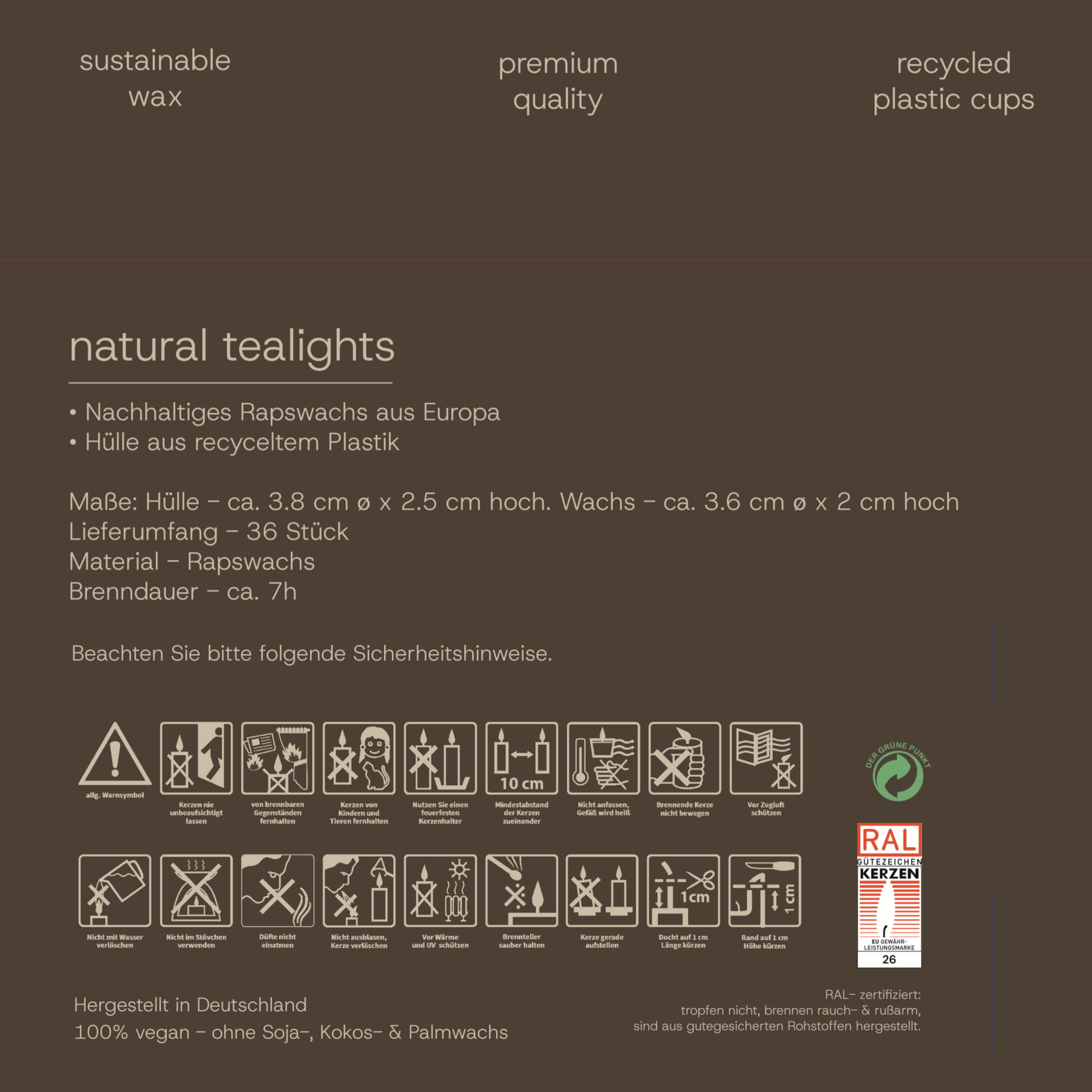- Hergestellt aus 100 % europäischem Rapswachs